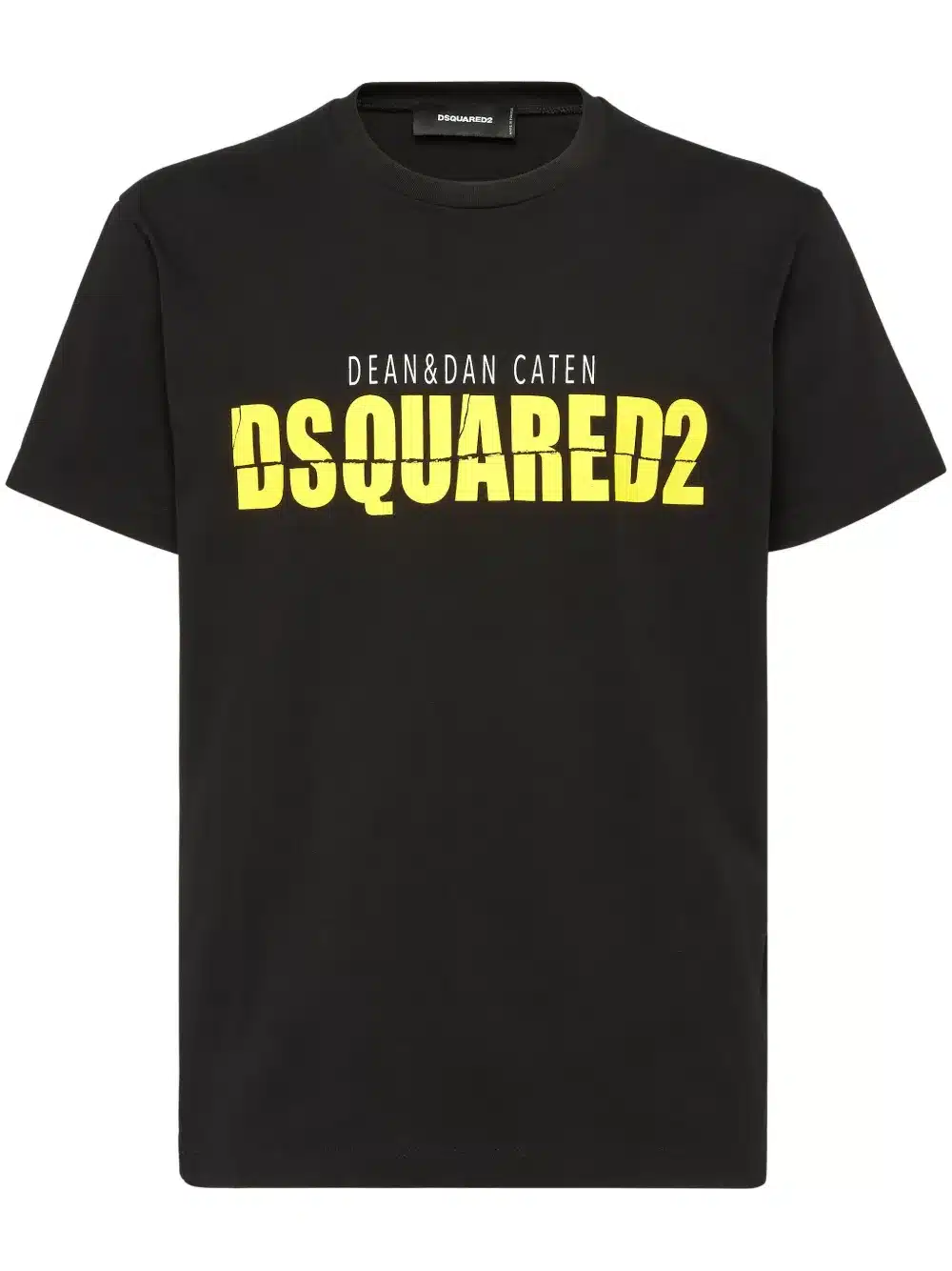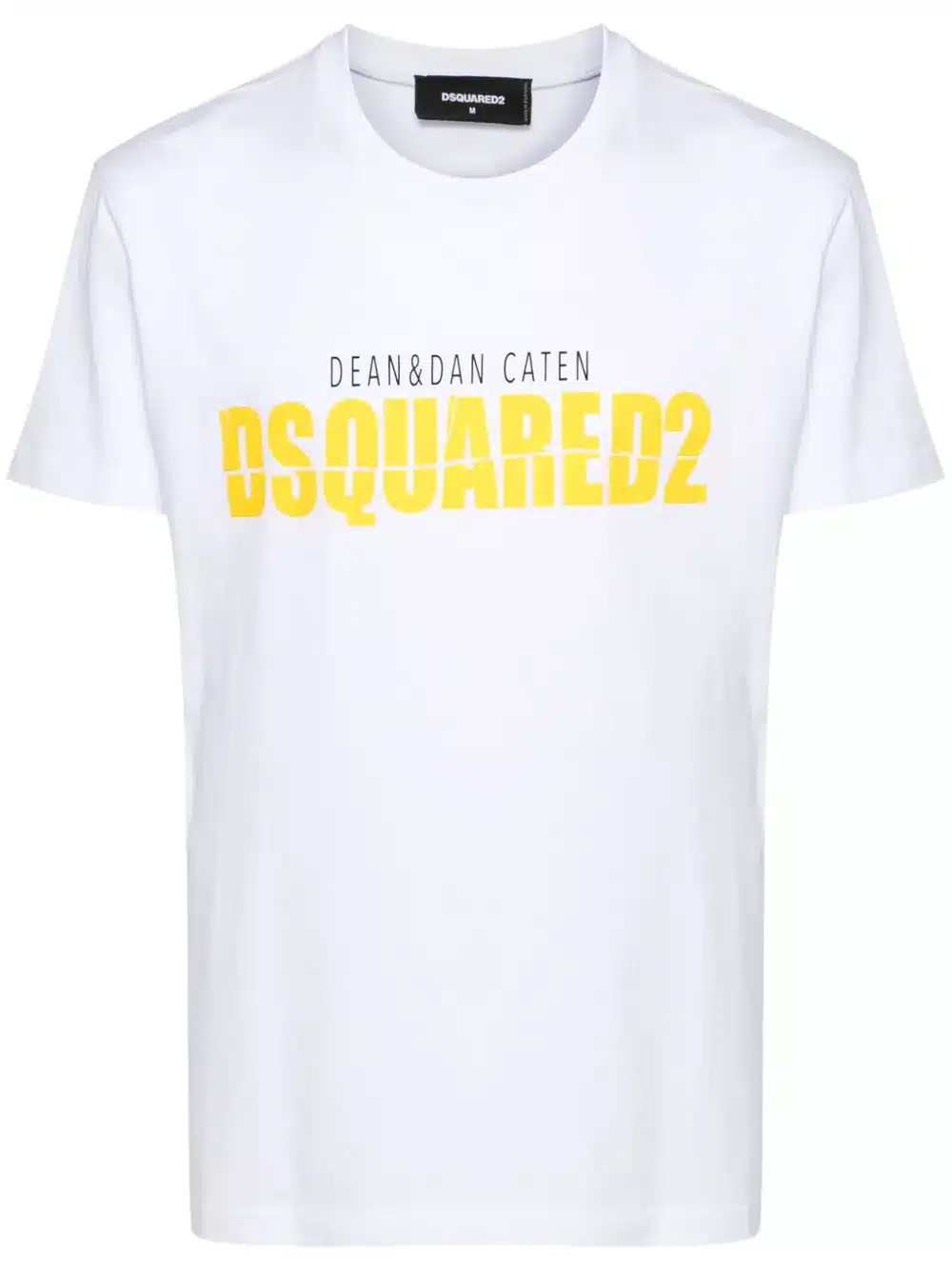 Questa una T-shirt Dsquared2, un capo dallo stile minimal ma dimpatto, perfetto per chi ama lo streetwear di lusso con un tocco distintivo. Caratteristiche principali: – Colore: Bianco, una base neutra e versatile che mette in risalto la grafica frontale. – Materiale: Probabilmente 100 cotone premium, per un comfort elevato e una sensazione morbida sulla pelle. – Design distintivo: – Scritta “DSQUARED2” in giallo bold al centro del petto, in caratteri maiuscoli e ben visibili. – Nome dei fondatori “DEAN DAN CATEN” stampato sopra in nero, che rende omaggio ai designer del brand. – Taglio regular fit, con una vestibilit comoda e moderna. – Collo girocollo a costine, per una migliore struttura e resistenza nel tempo. Stile e utilizzo: – Perfetta da abbinare a jeans slim-fit, jogger o pantaloni cargo, per un look streetwear raffinato. – Ideale con sneakers Dsquared2 o chunky shoes, per enfatizzare lestetica contemporanea del brand. – Un capo perfetto per chi vuole unire stile casual e dettagli luxury, con un look fresco e riconoscibile. Questa T-shirt Dsquared2 ideale per chi cerca un capo moderno, audace e facile da abbinare, perfetto per outfit casual ma con carattere.
