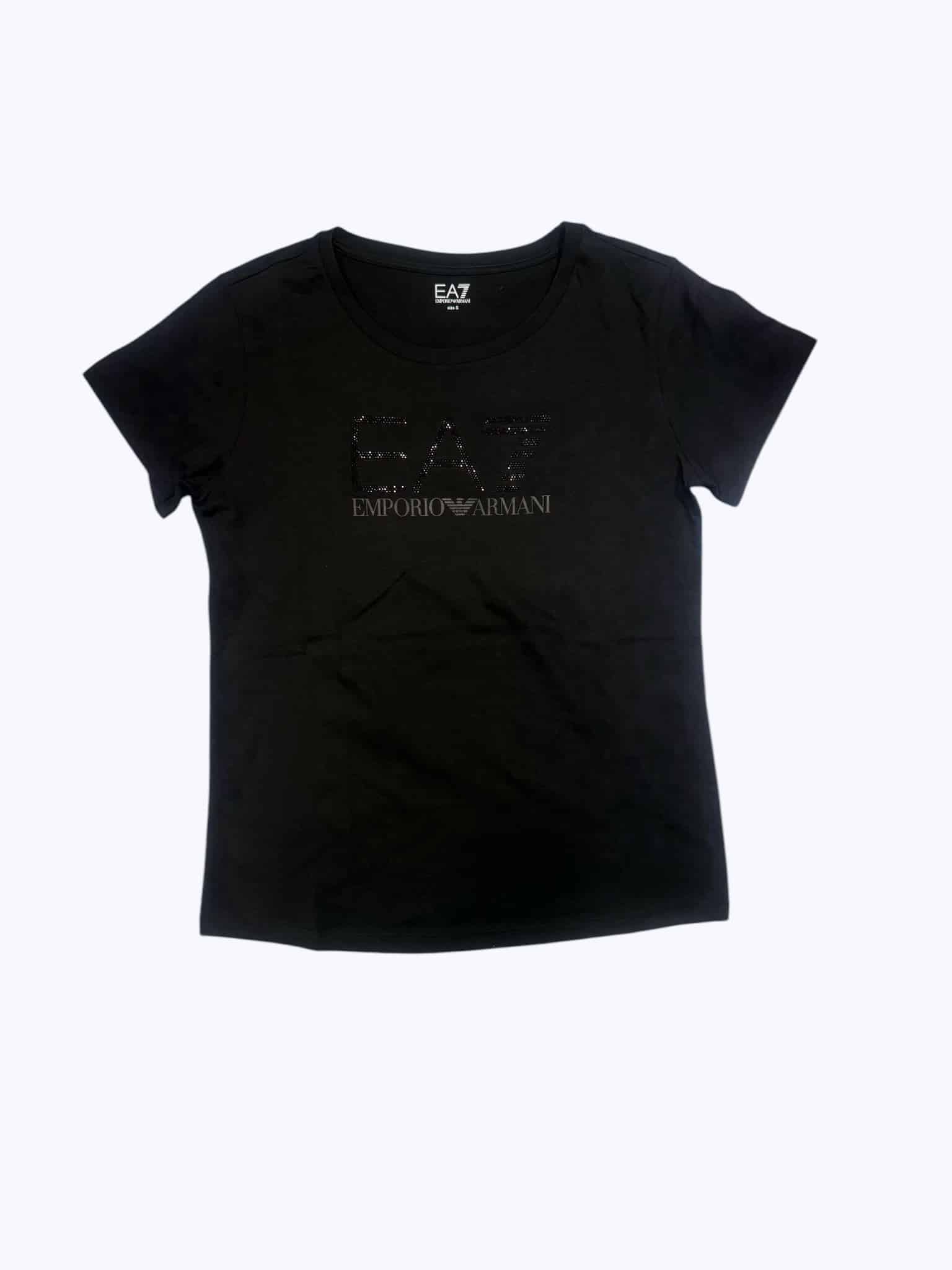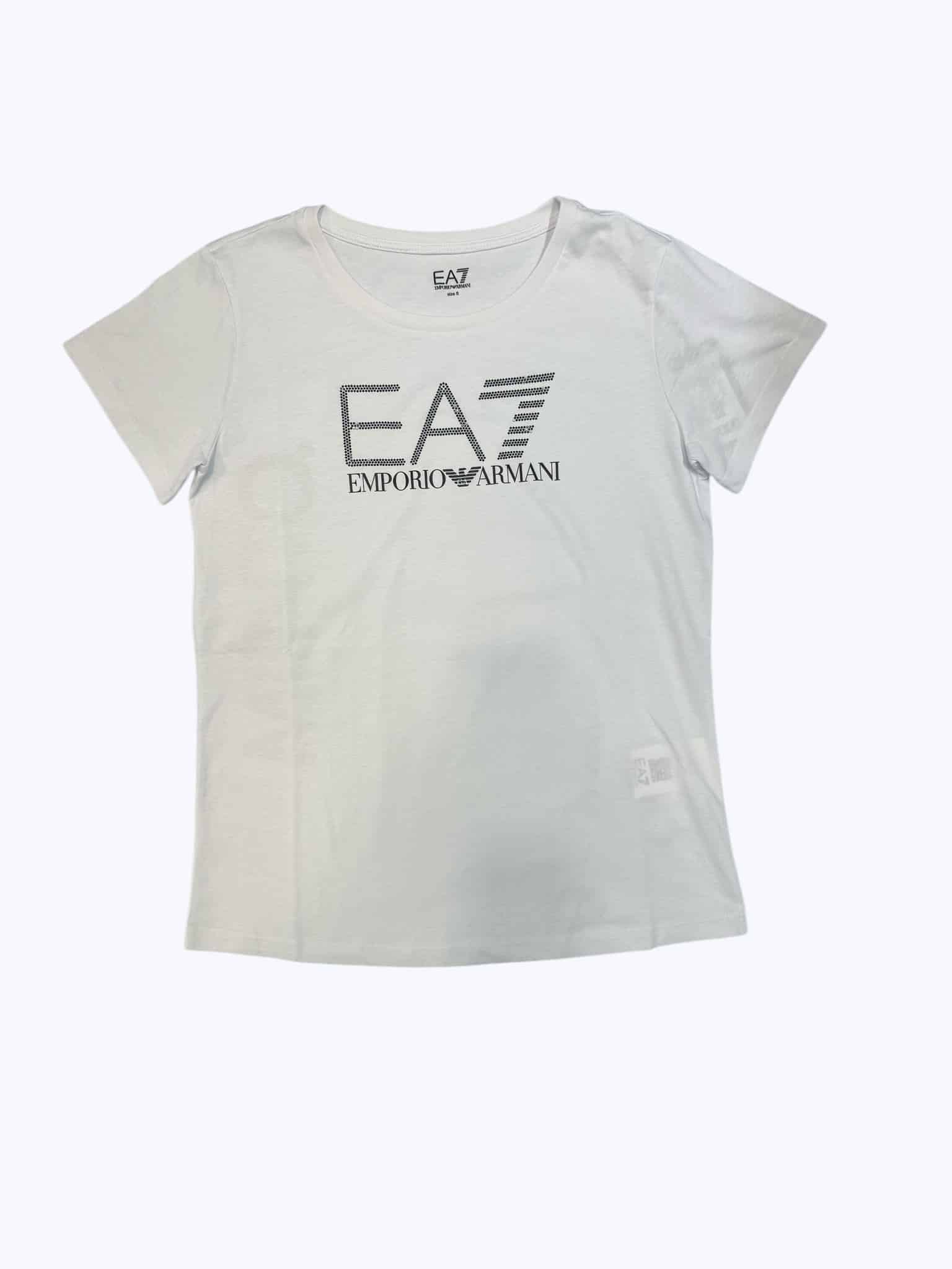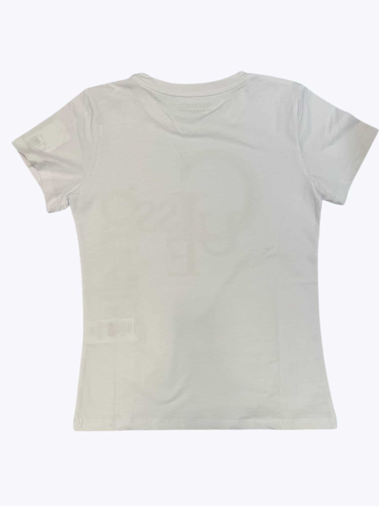 T-shirt da donna in cotone con taglio slim, scollo tondo e maniche corte. Il design è valorizzato da un logo frontale impreziosito da dettagli brillanti, che conferiscono un tocco elegante e distintivo. Ideale per un look casual ma curato.