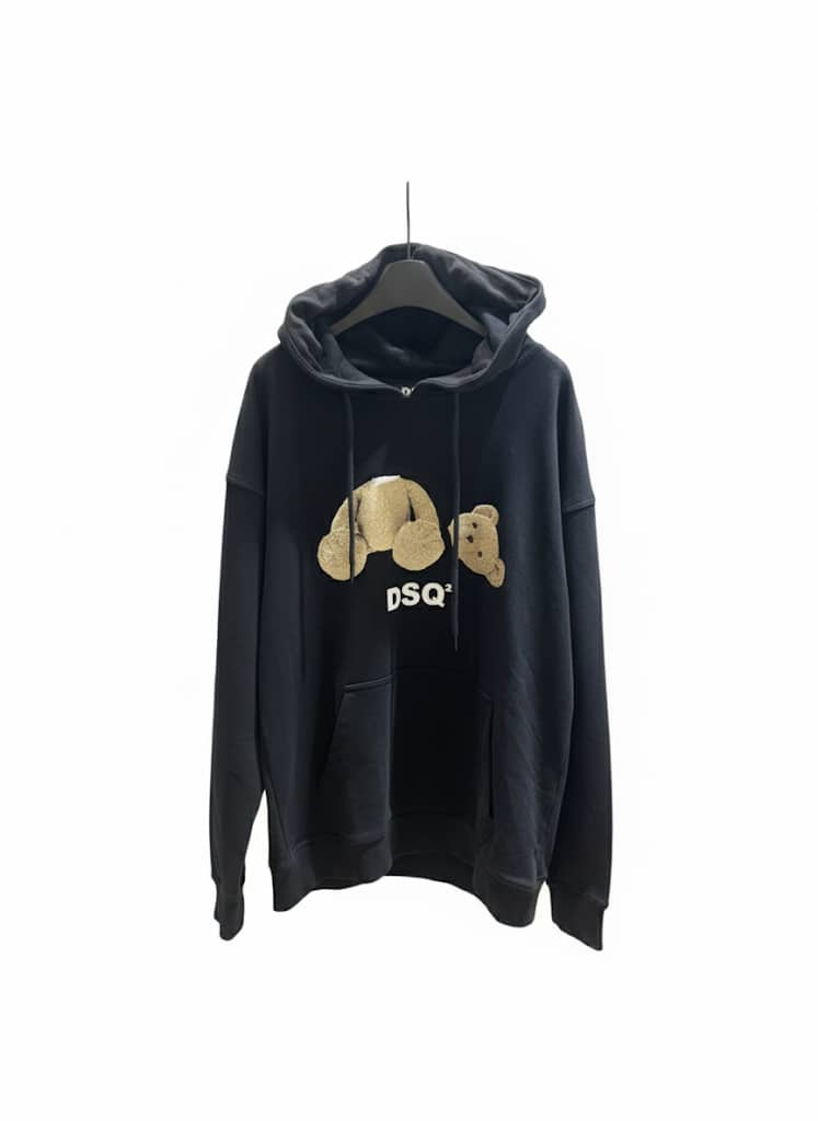 Felpa DSQ2 100% cotone con cappuccio, grafica “Teddy” e logo in basso.
