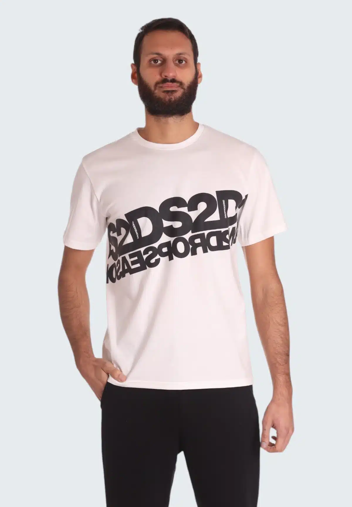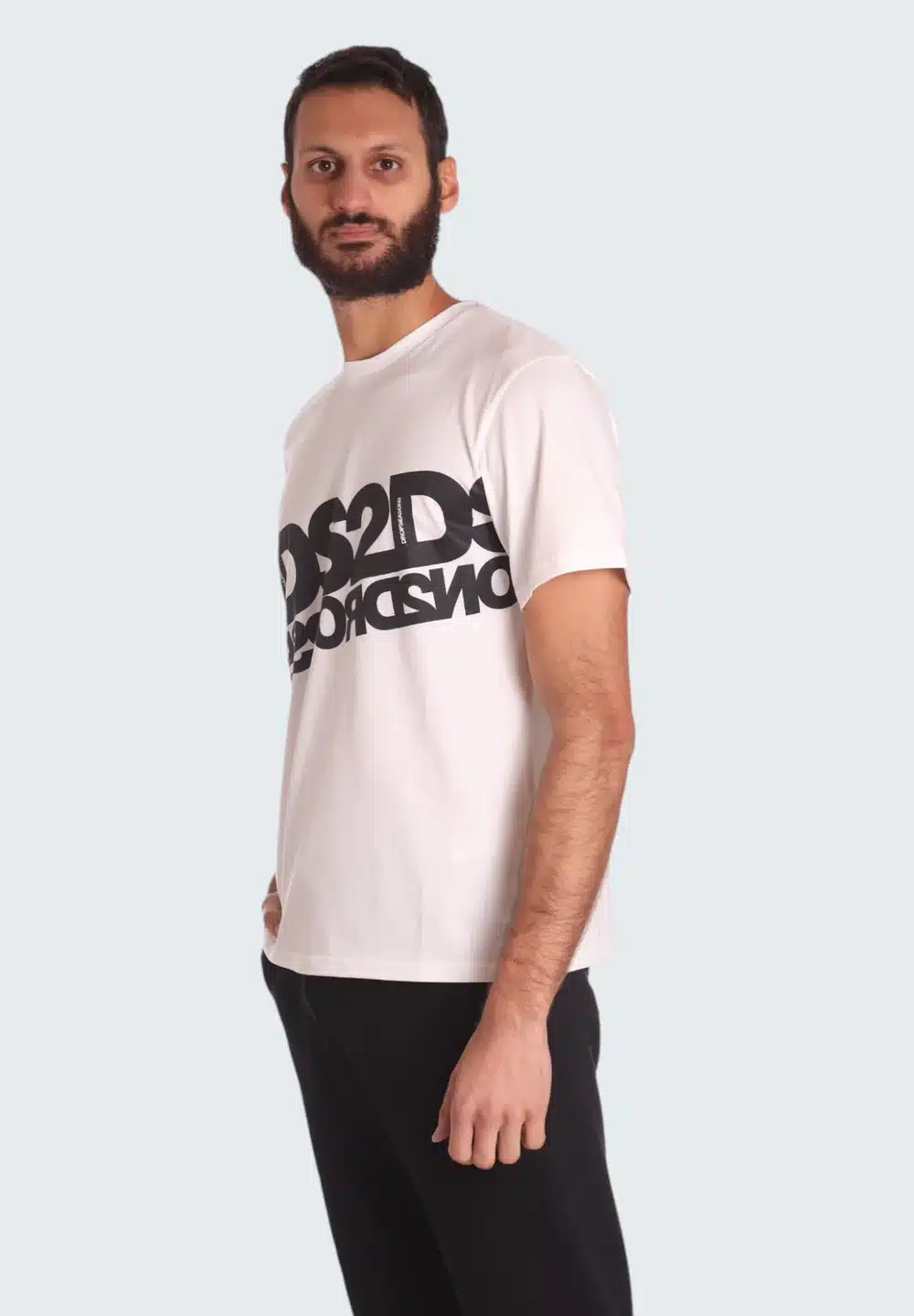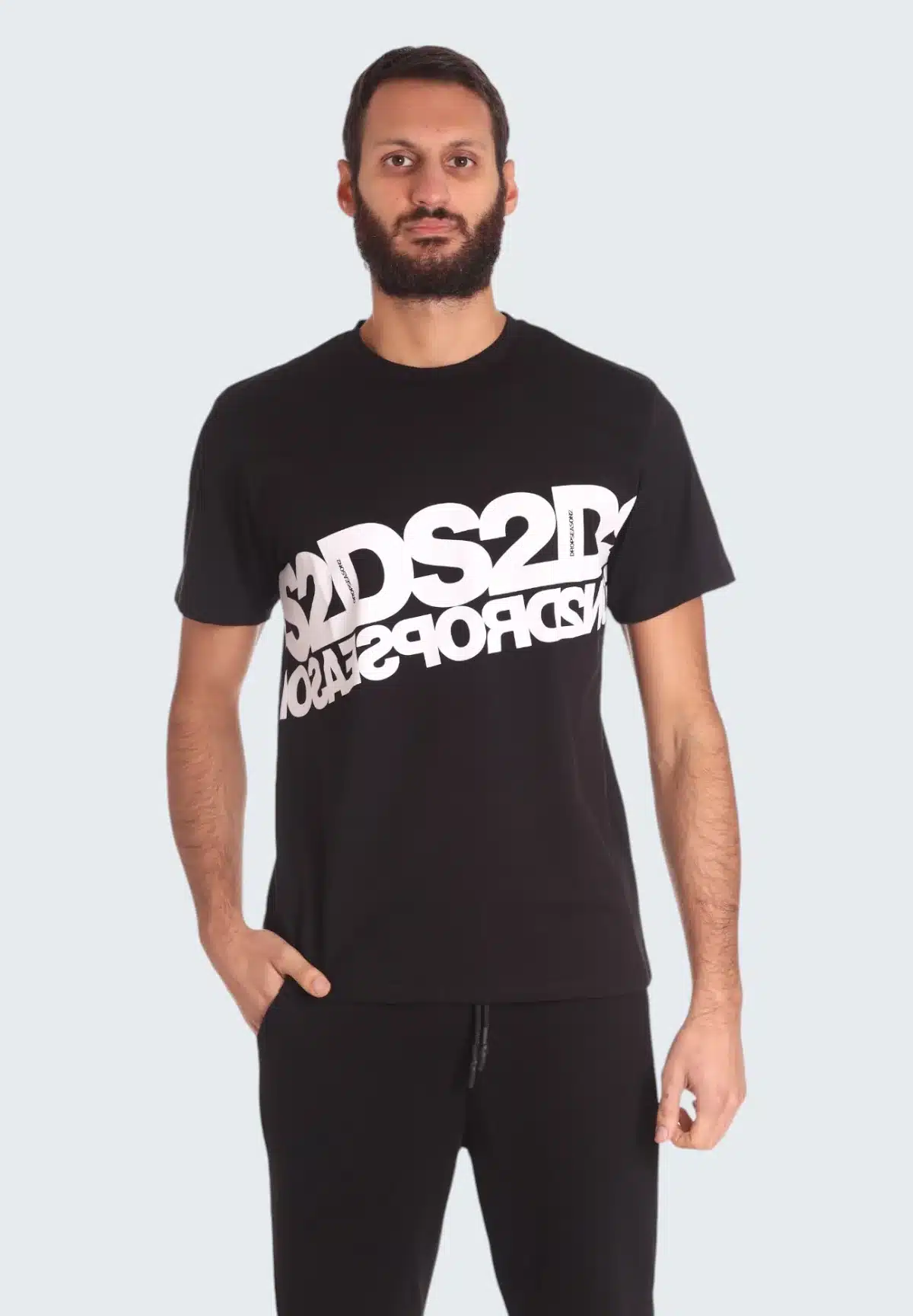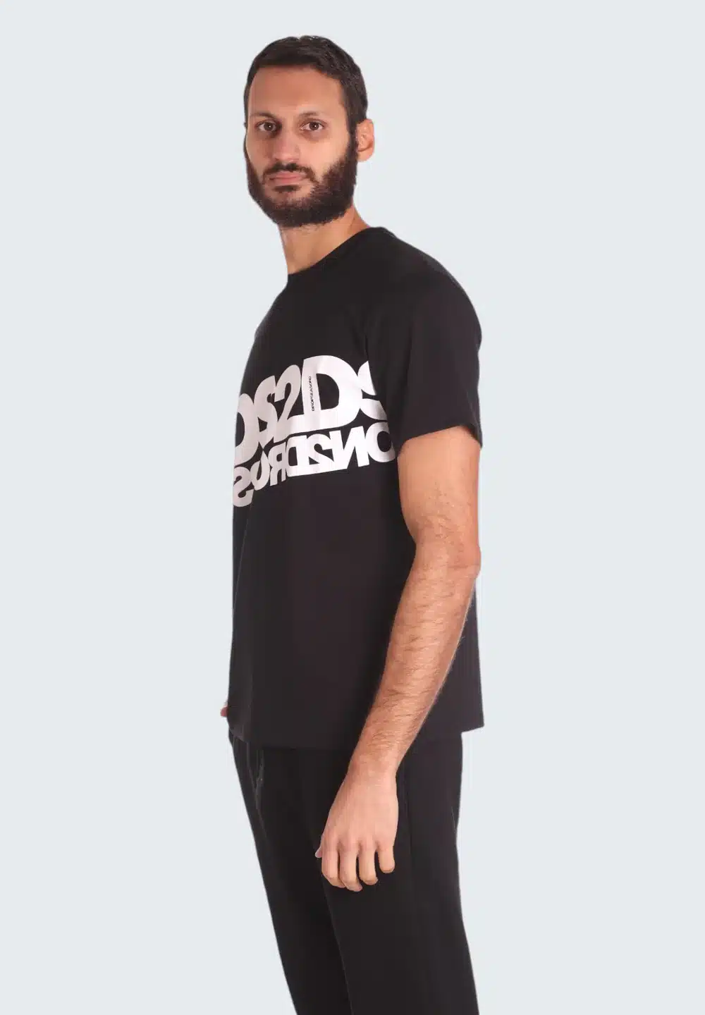 T-shirt DS2 Nera con Stampa Bianco T-shirt a maniche corte dal design moderno e streetwear, realizzata in cotone di alta qualit. Il colore nero crea un contrasto deciso con la stampa bianca DSQUARED2, disposta in modo specchiato e dinamico sulla parte frontale. Vestibilit regolare, girocollo classico e tessuto morbido, perfetta per un look casual e urban.