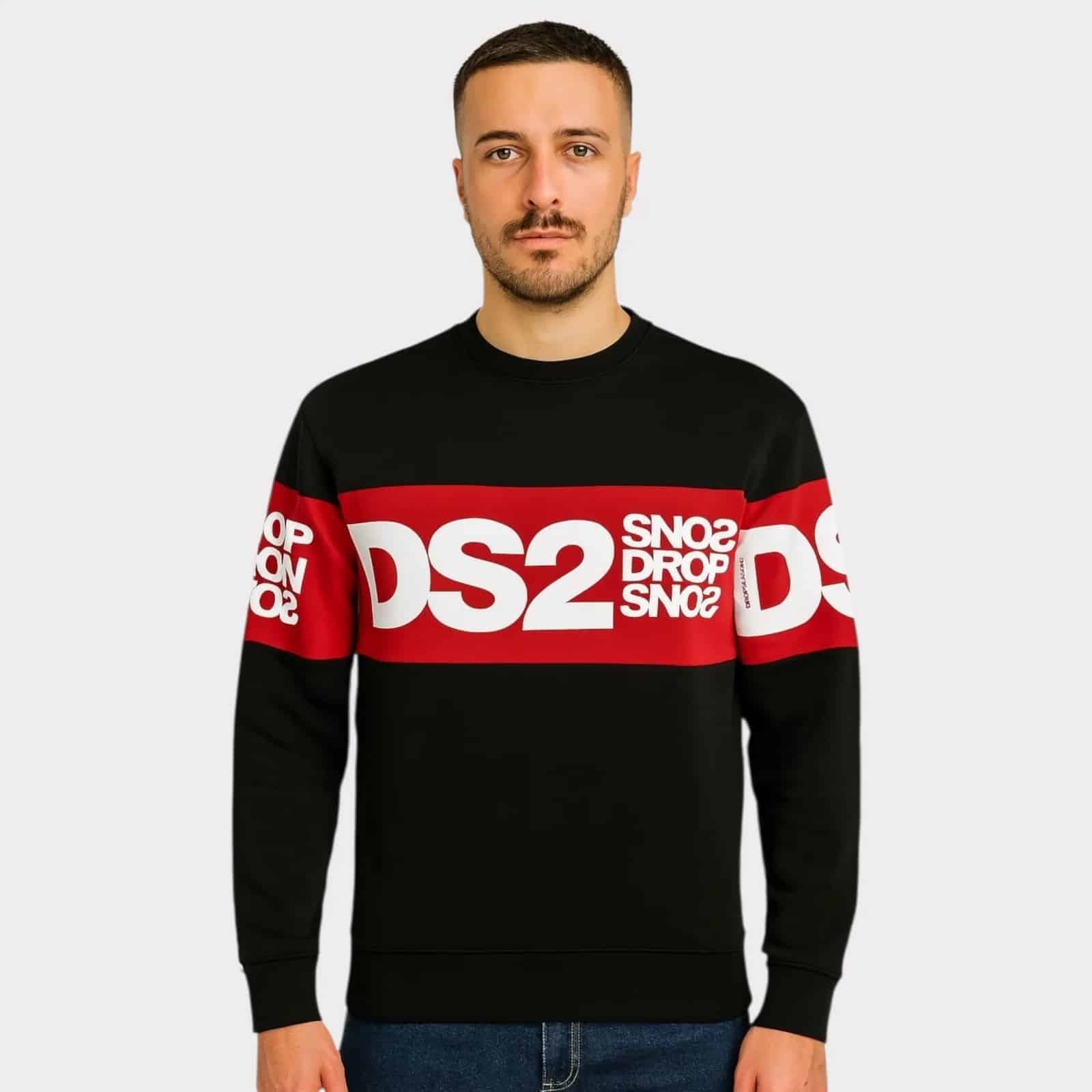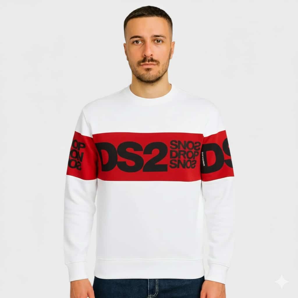FELPA DS2 100% COTONE, GIROCOLLO CON BANDA ROSSA CENTRALE,LOGO CENTRALE.