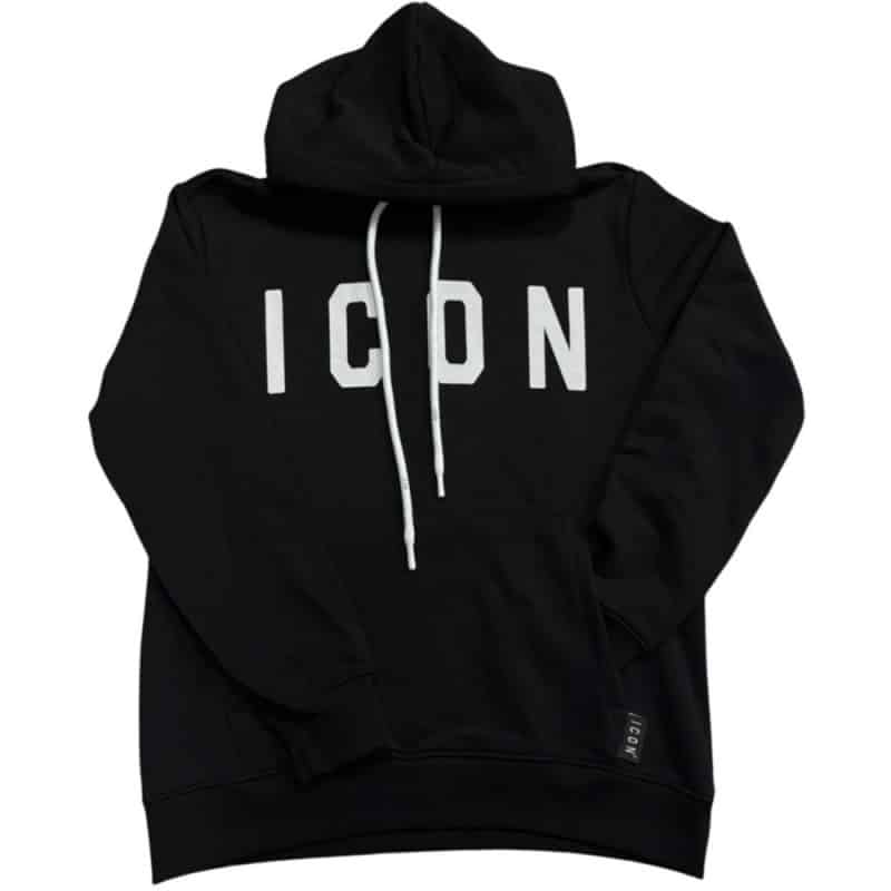 Felpa ICON 100% cotone con cappuccio, tascone centrale e logo al centro.
