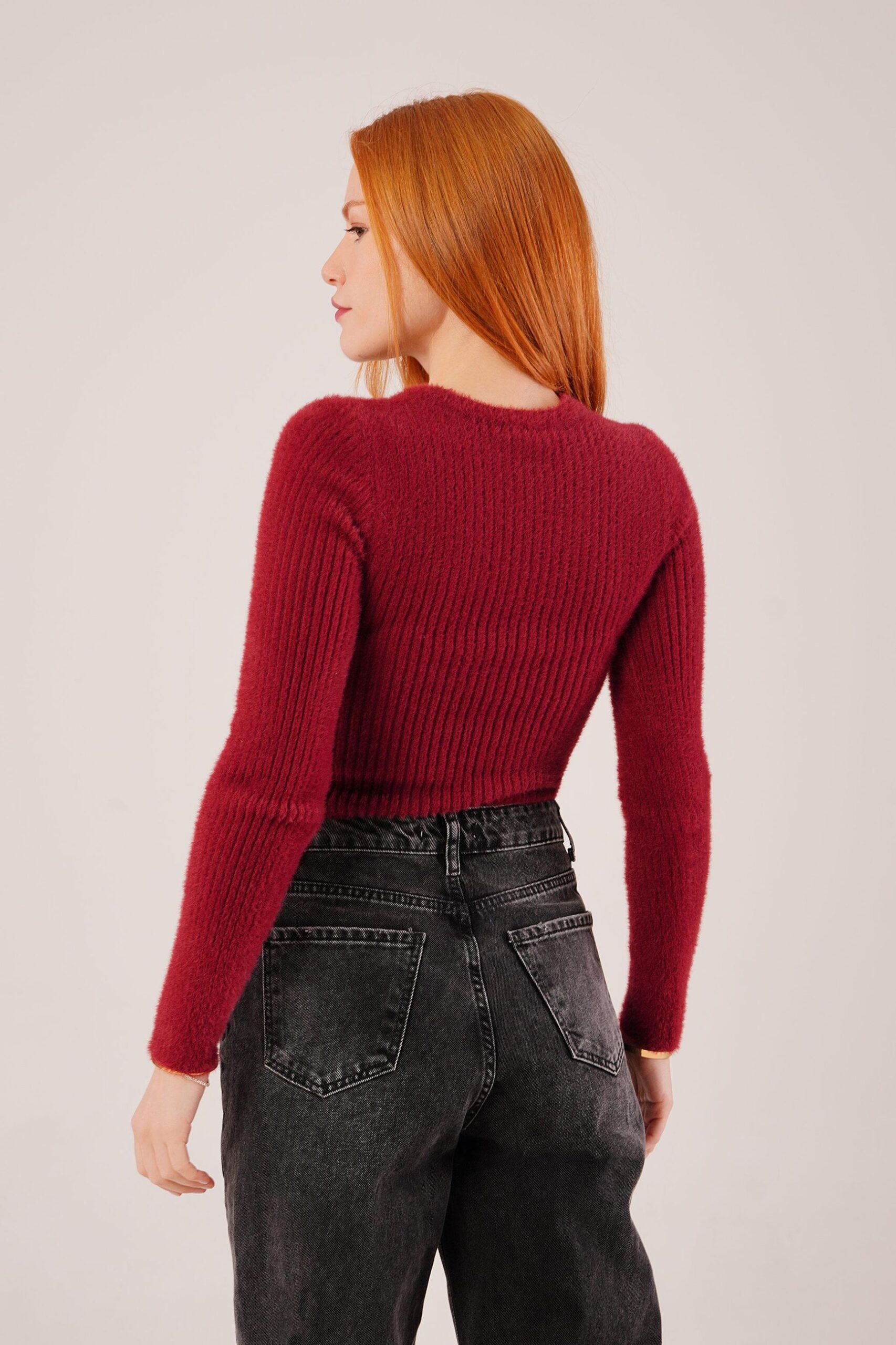 Maglione Bordeaux – Aderente Tagliato Girocollo