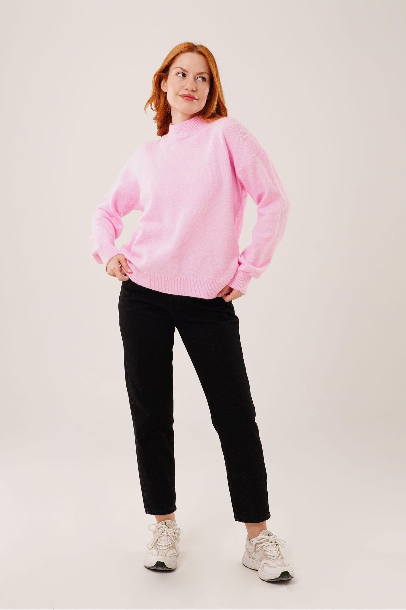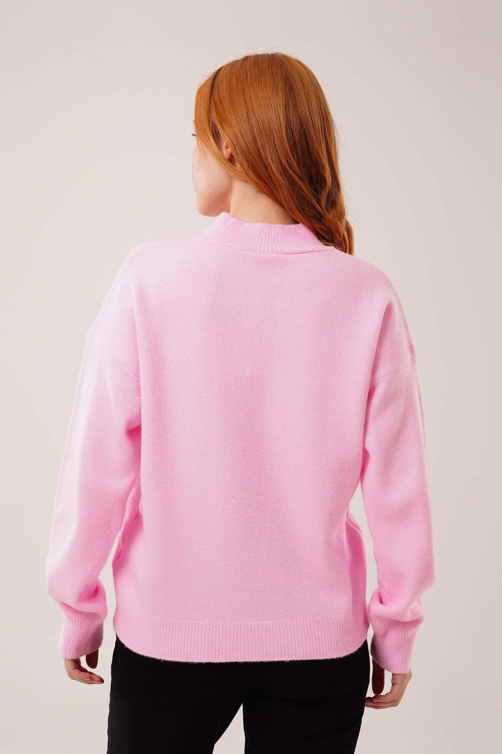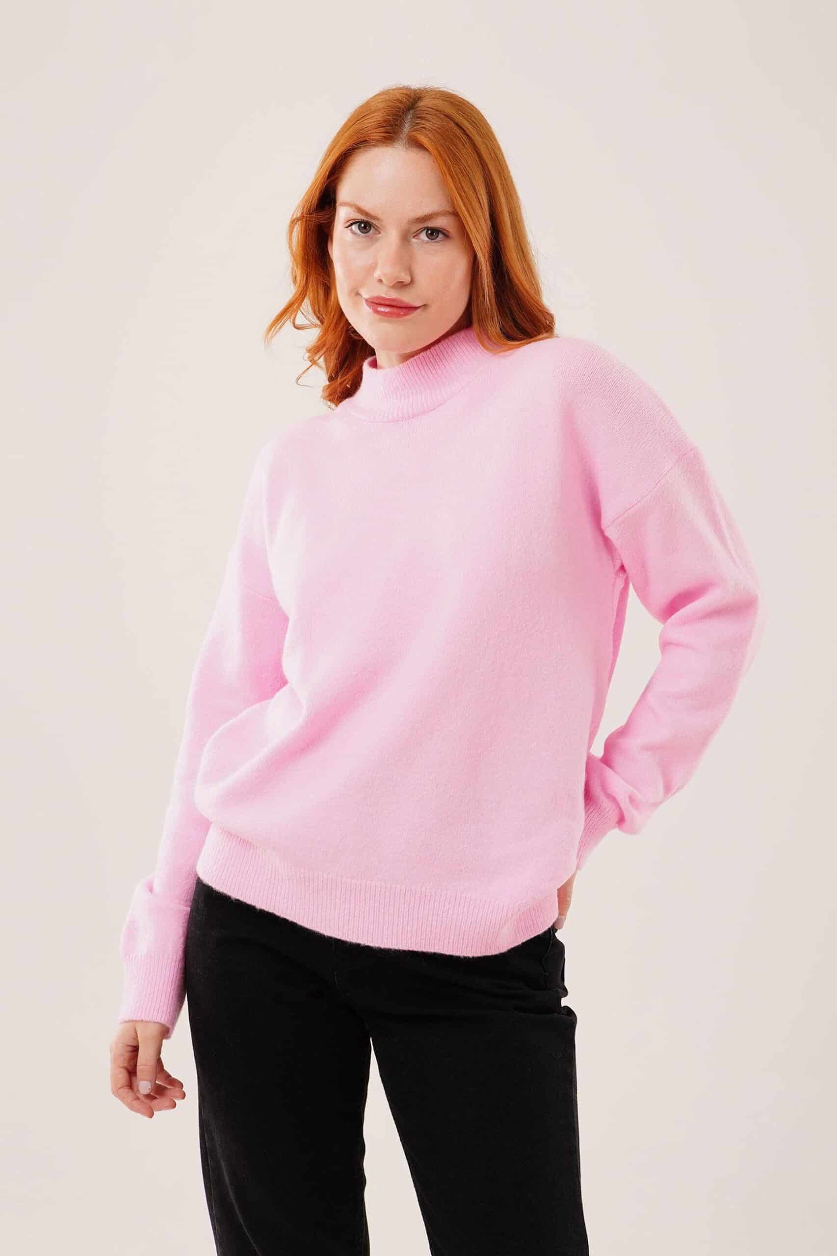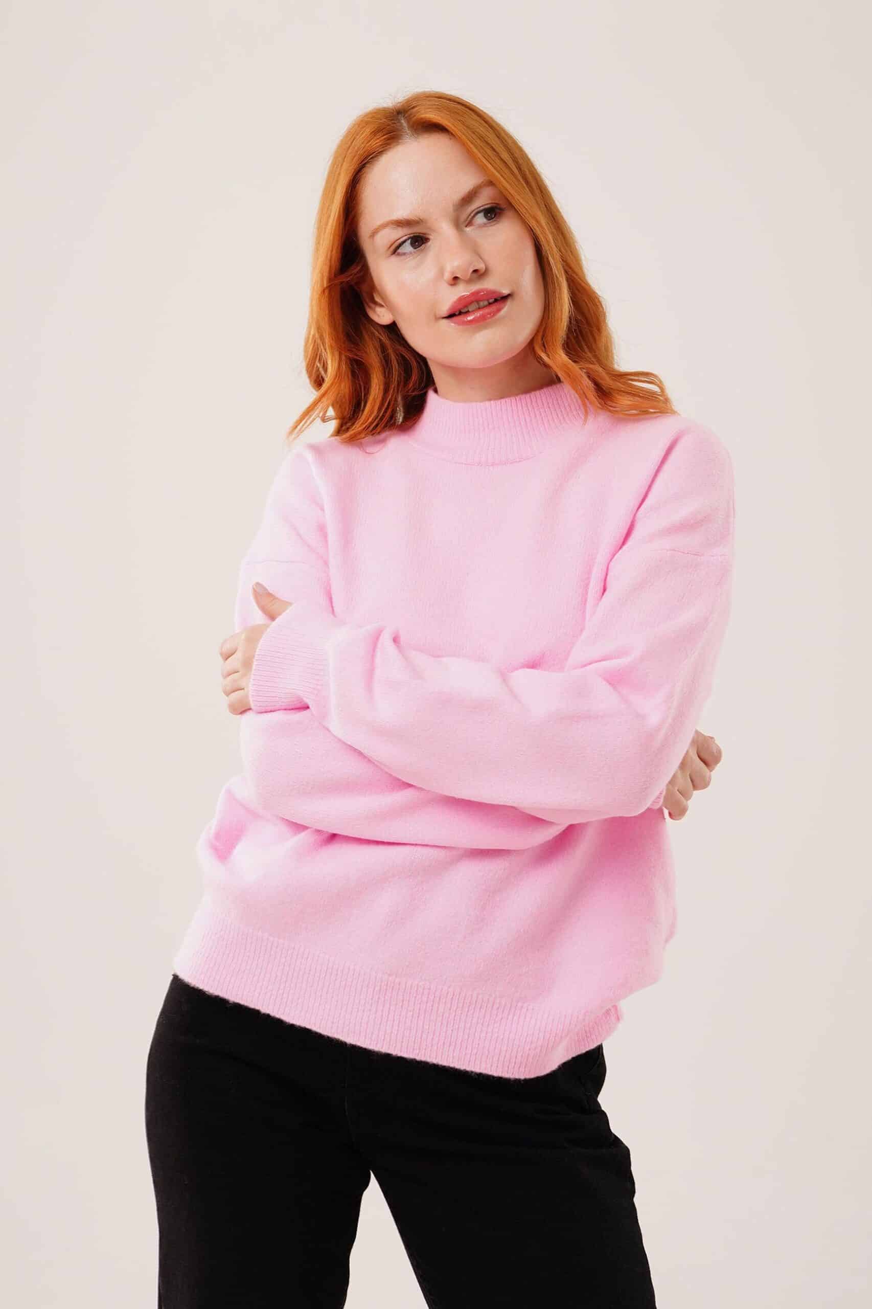 Rosa Maglione Vestibilit� Oversize Collo Alto Manica Lunga