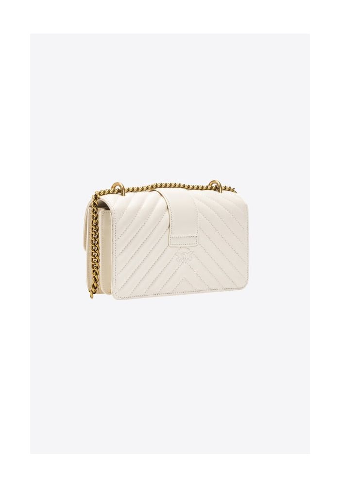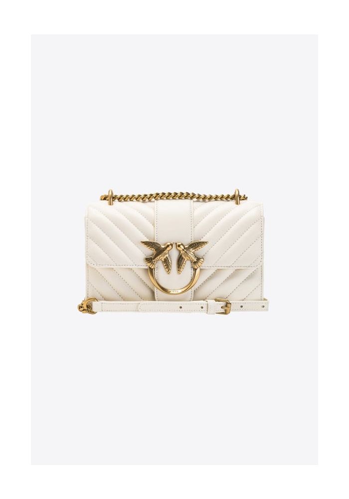 Questa una borsa Pinko Love Icon V Quilt, un accessorio elegante e raffinato, perfetto per chi ama il lusso contemporaneo con un tocco glamour. Caratteristiche principali: – Colore: Bianco panna, una tonalit sofisticata e versatile. – Materiale: Probabilmente pelle o eco-pelle premium, con una texture morbida e resistente. – Design distintivo: – Trapuntatura a V, che dona un aspetto elegante e strutturato. – Chiusura con la classica fibbia Love Birds in metallo dorato, simbolo iconico di Pinko. – Doppia tracolla: una a catena dorata per un look chic e una in pelle regolabile per un uso pi casual. – Dettagli in metallo gold, che aggiungono un tocco di lusso al design. Stile e utilizzo: – Perfetta per occasioni eleganti e look da giorno raffinati. – Ideale da abbinare a abiti, blazer o look casual-chic, per un outfit sofisticato. – Adatta sia come borsa a spalla che a tracolla, grazie alla versatilit del doppio manico. Questa Pinko Love Icon V Quilt una borsa di tendenza e senza tempo, perfetta per chi cerca un accessorio iconico e glamour da aggiungere al proprio guardaroba.