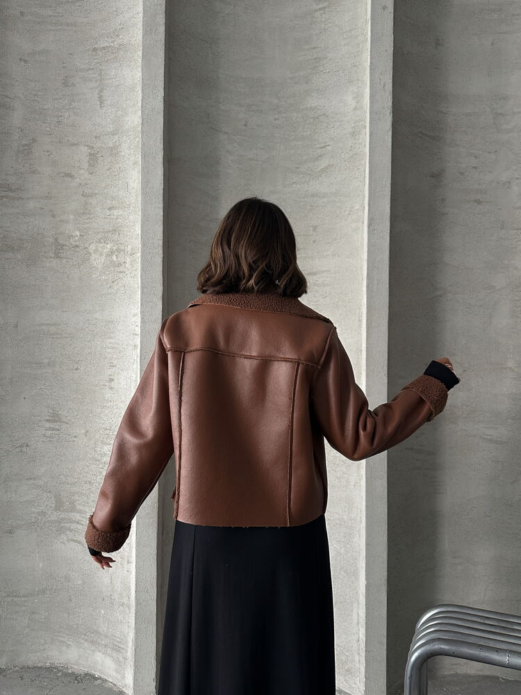 Cappotto Con Cerniera In Pelle Laminata Color Cuoio