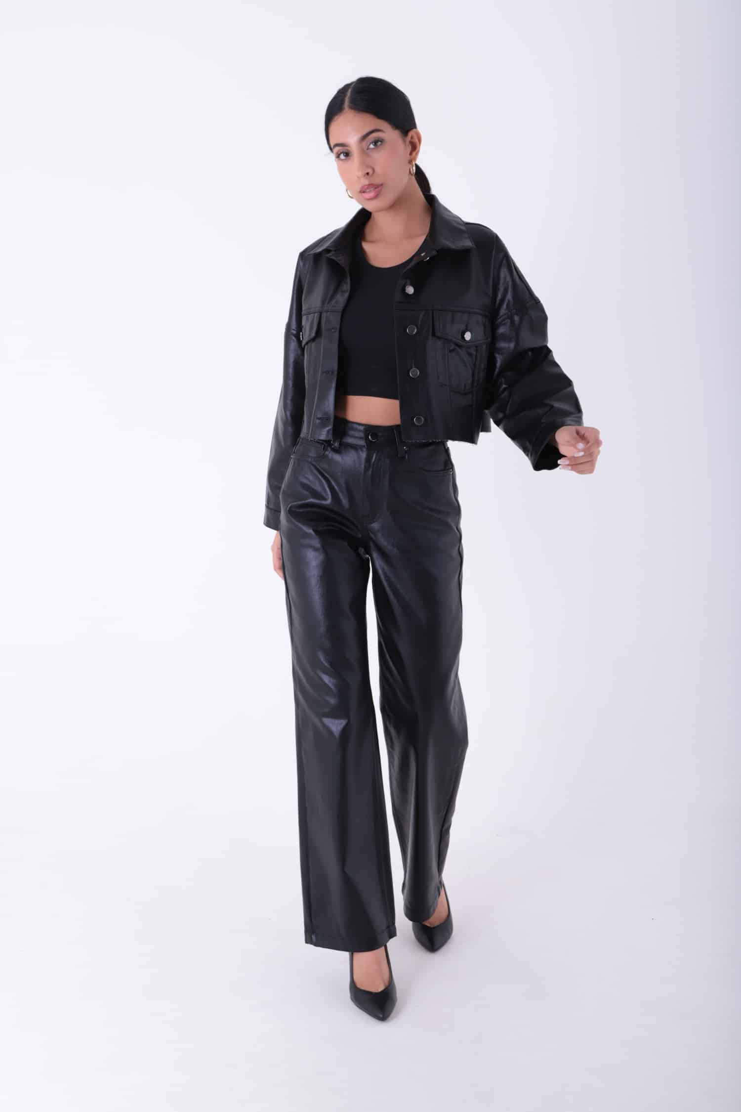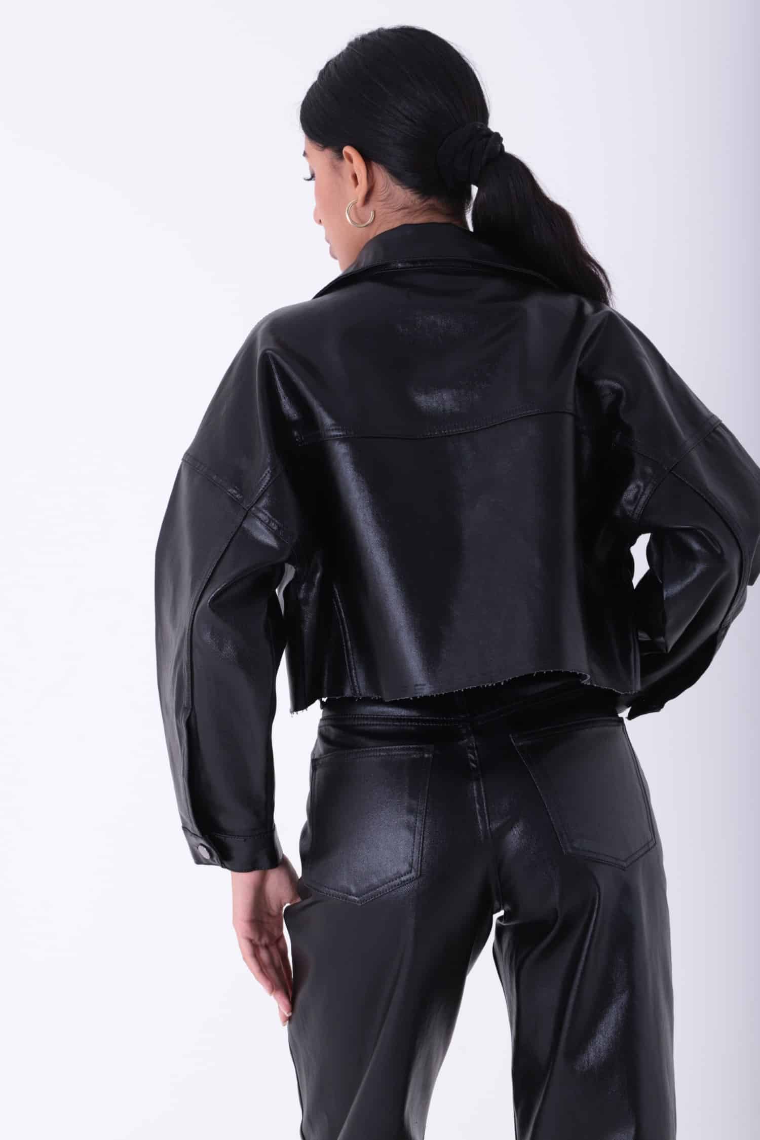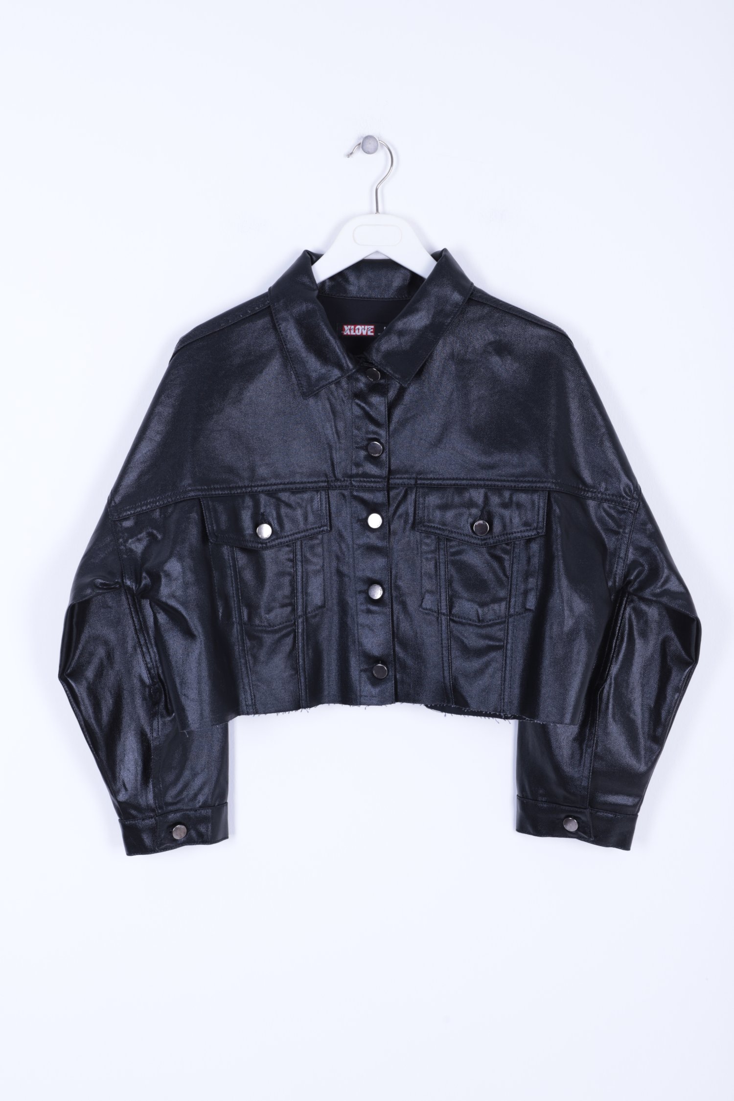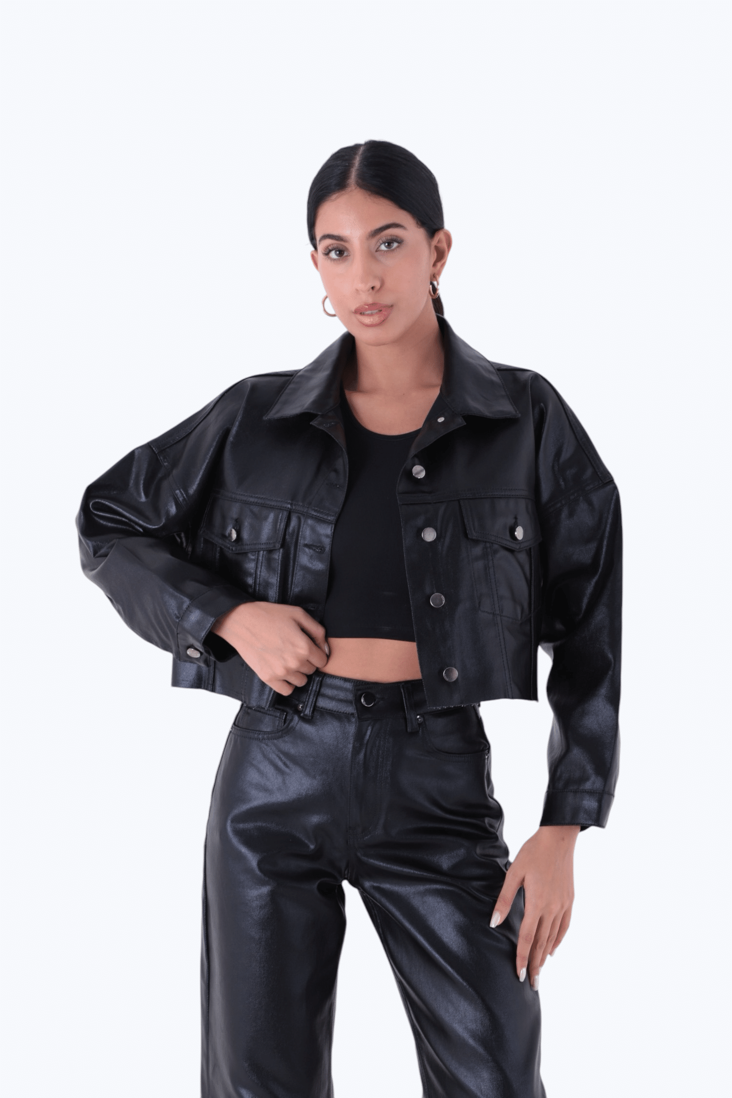 Descrizione della Giacca in Ecopelle Nera Lucida Questa giacca cropped in ecopelle nera lucida un capo audace e alla moda, perfetto per chi ama uno stile urban e grintoso. Il suo design strutturato e i dettagli minimal la rendono un must-have per un look moderno e sofisticato. Caratteristiche: Colore: Nero lucido, per un effetto elegante e deciso. Modello: Cropped, con una silhouette corta e moderna. Chiusura: Bottoni frontali metallici per un tocco di carattere. Tasche: Due tasche frontali con patta, funzionali e stilose. Materiale: Ecopelle di alta qualit, morbida e confortevole. Maniche: Larghe con polsini regolabili, per un fit rilassato e contemporaneo. Come abbinarla: Look casual streetwear: Con jeans a vita alta e sneakers per un outfit trendy e urbano. Look rock-chic: Abbinata a leggings in pelle e stivaletti per un tocco grunge. Look elegante e sofisticato: Portata sopra un abito aderente e tacchi per un contrasto raffinato. Un capo versatile per un look di carattere e senza tempo!